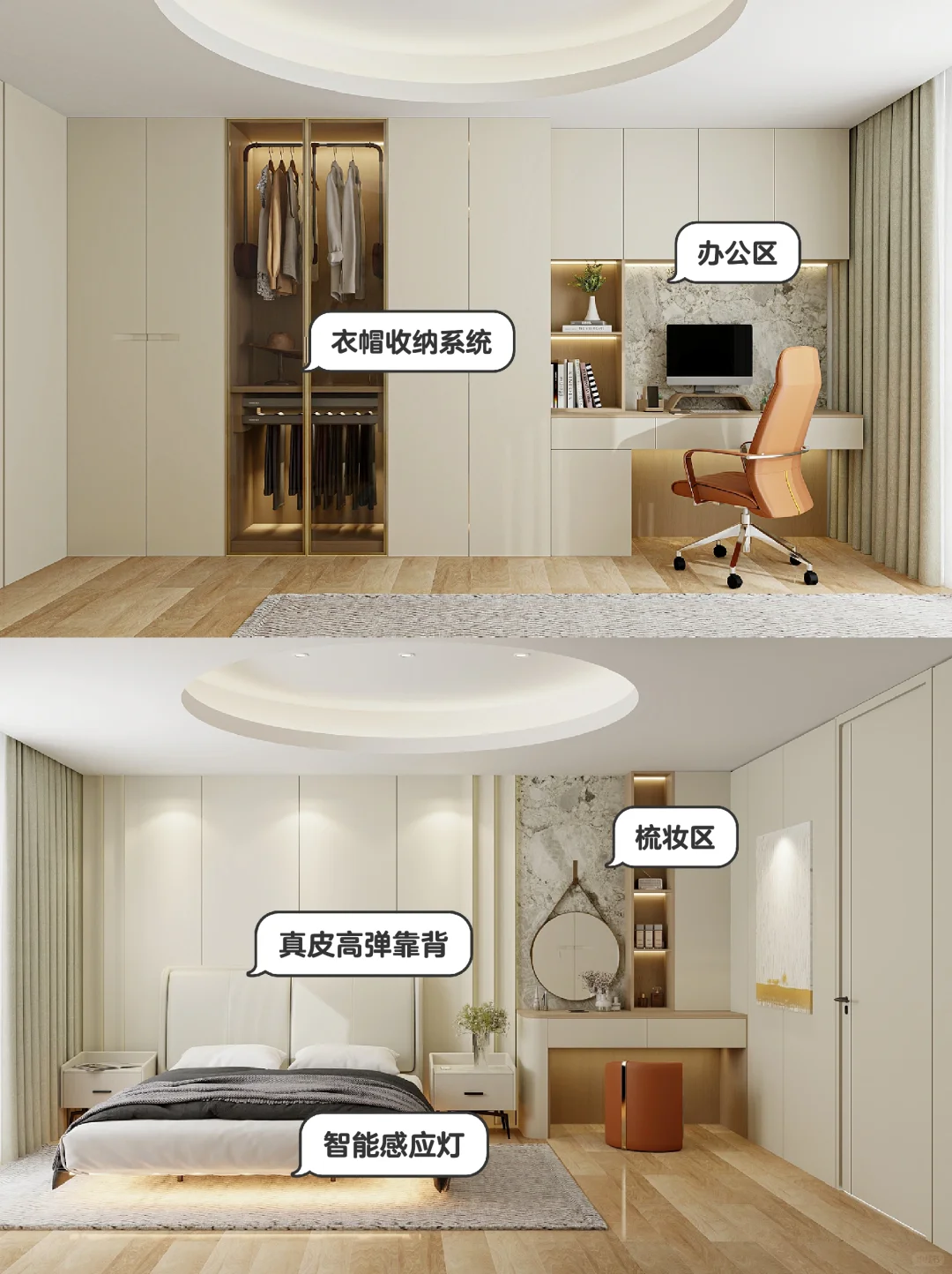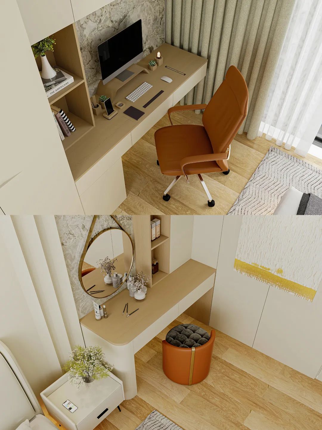 把辦公區(qū)裝進(jìn)臥室里,實(shí)現(xiàn)便捷辦公,有個舒適獨(dú)立的工作空間,效率會提升不少~