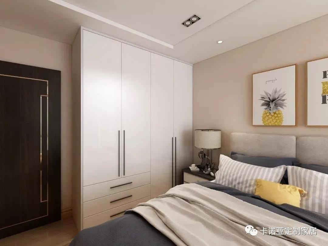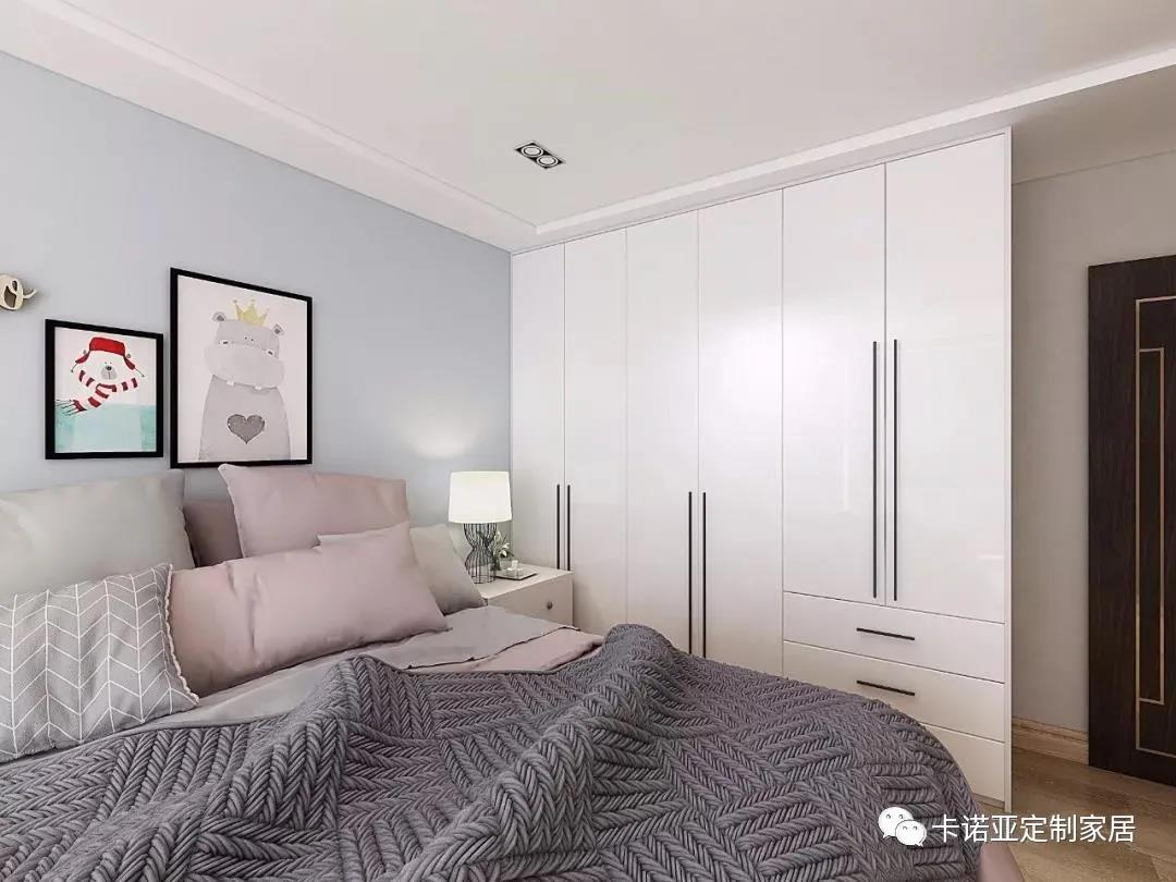 衣柜、護(hù)墻板、地板都采用統(tǒng)一的素色