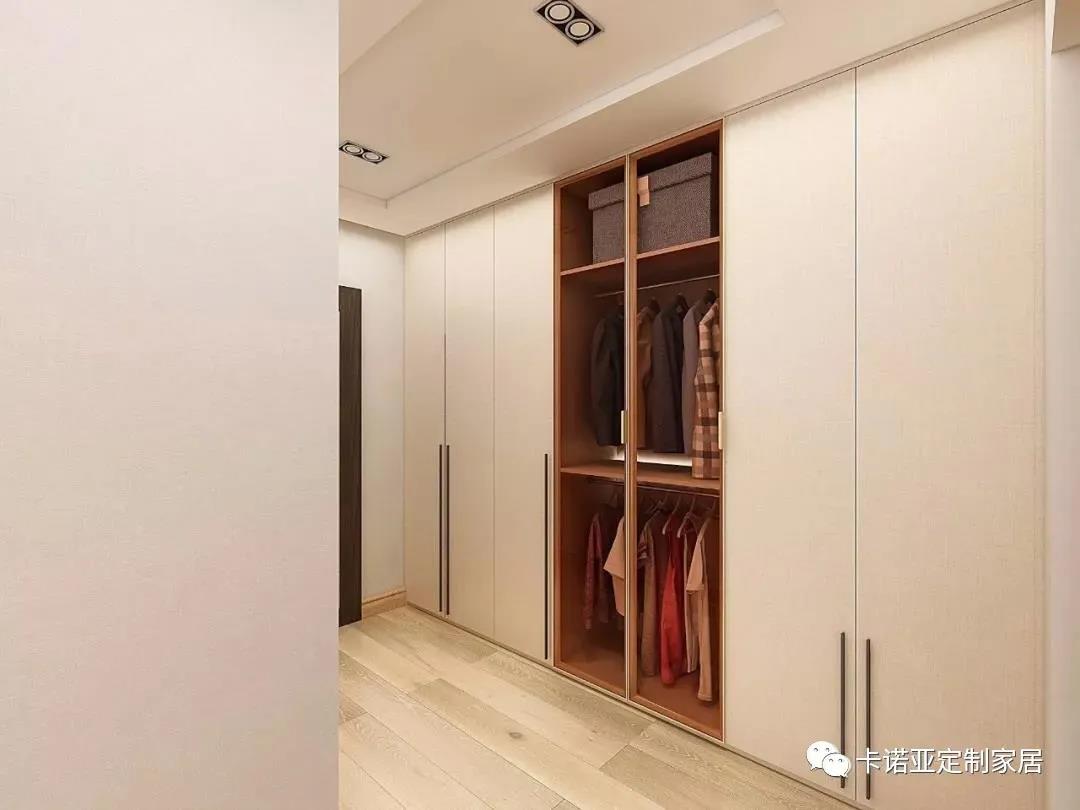 在主臥的入口處定制了一個(gè)入墻式衣帽間