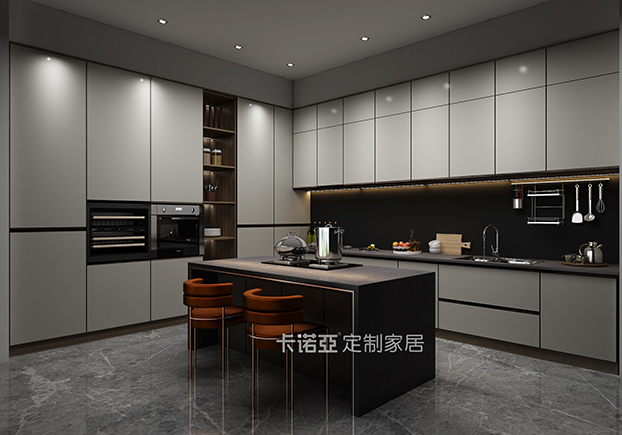 廚房是整面純白色,沒(méi)有多余復(fù)雜的設(shè)計(jì),在靠墻的一面設(shè)置立體置物架,可以放一些調(diào)料和炊具。