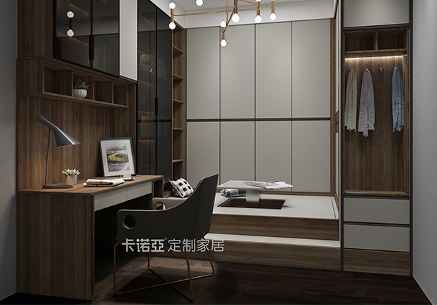 臥室比較沉穩(wěn)大氣,玻璃門(mén)半開(kāi)放式衣柜黑白相間,空間空曠開(kāi)放,有點(diǎn)極簡(jiǎn)風(fēng)。