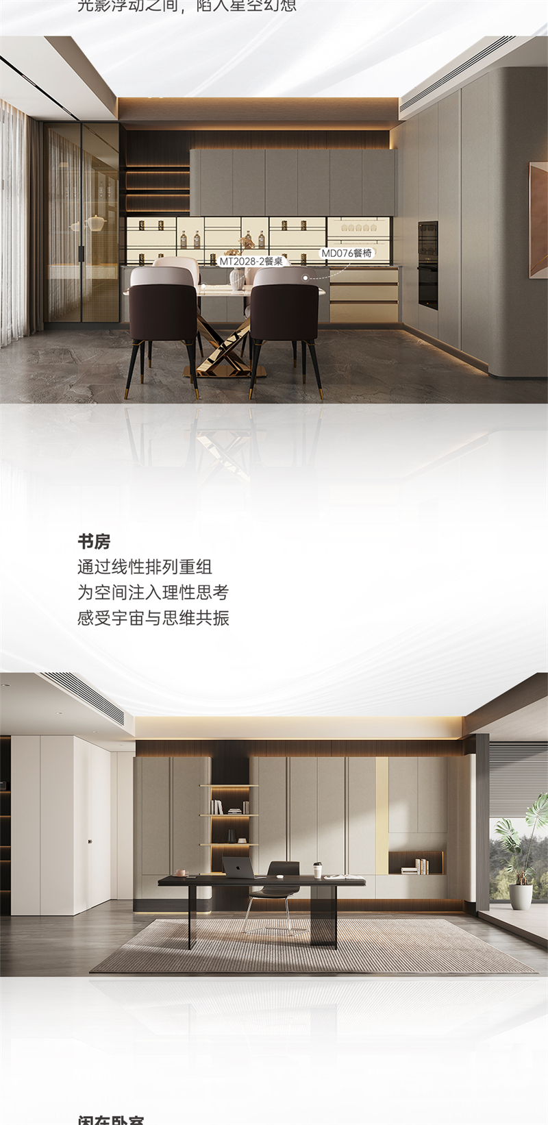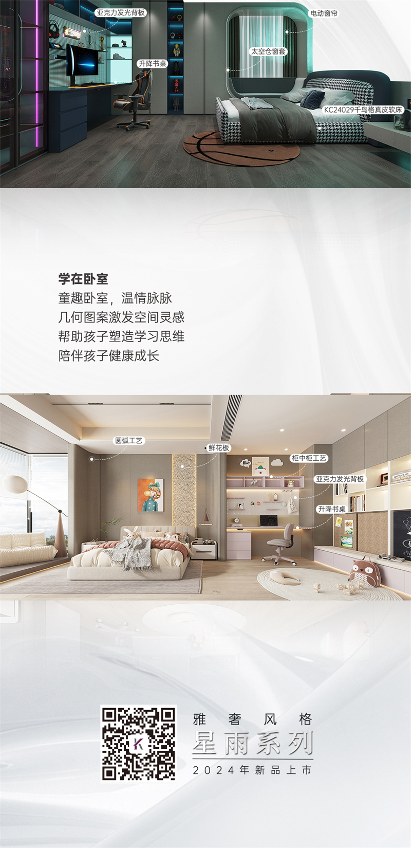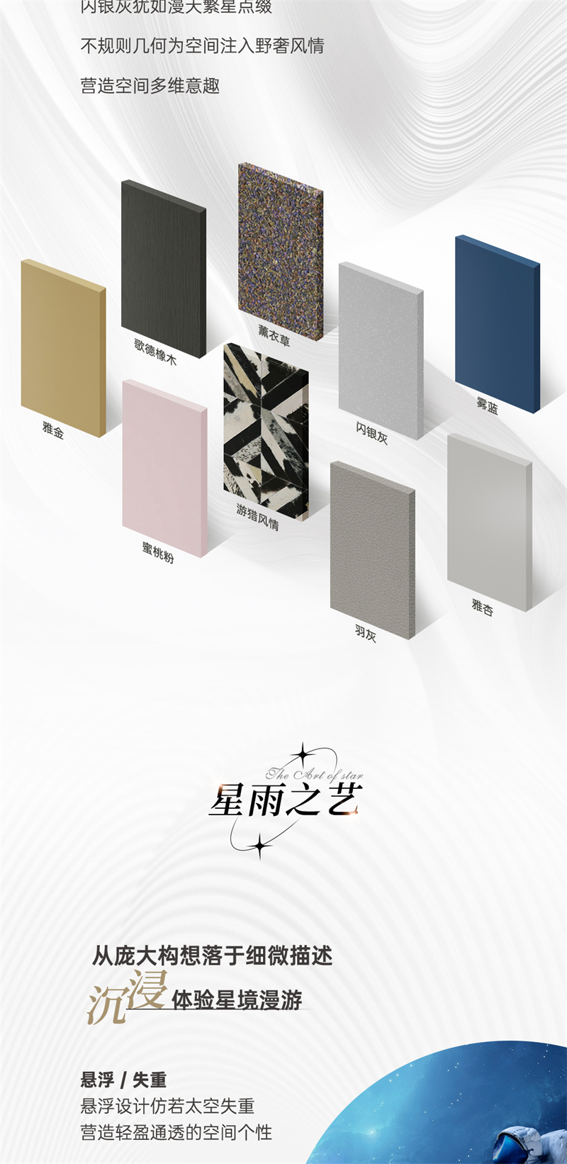2024年新品系列,星雨 |雅奢風(fēng)格 該系列產(chǎn)品采用柔和的色彩搭配和浪漫的元素點(diǎn)綴,打造溫馨浪漫的家居氛圍。閑在臥室:演繹高端人居雅奢生活 ,沉浸精智臥室空間,暢享居家儀式感,將生活舒適與當(dāng)代美學(xué)精細(xì)度融合