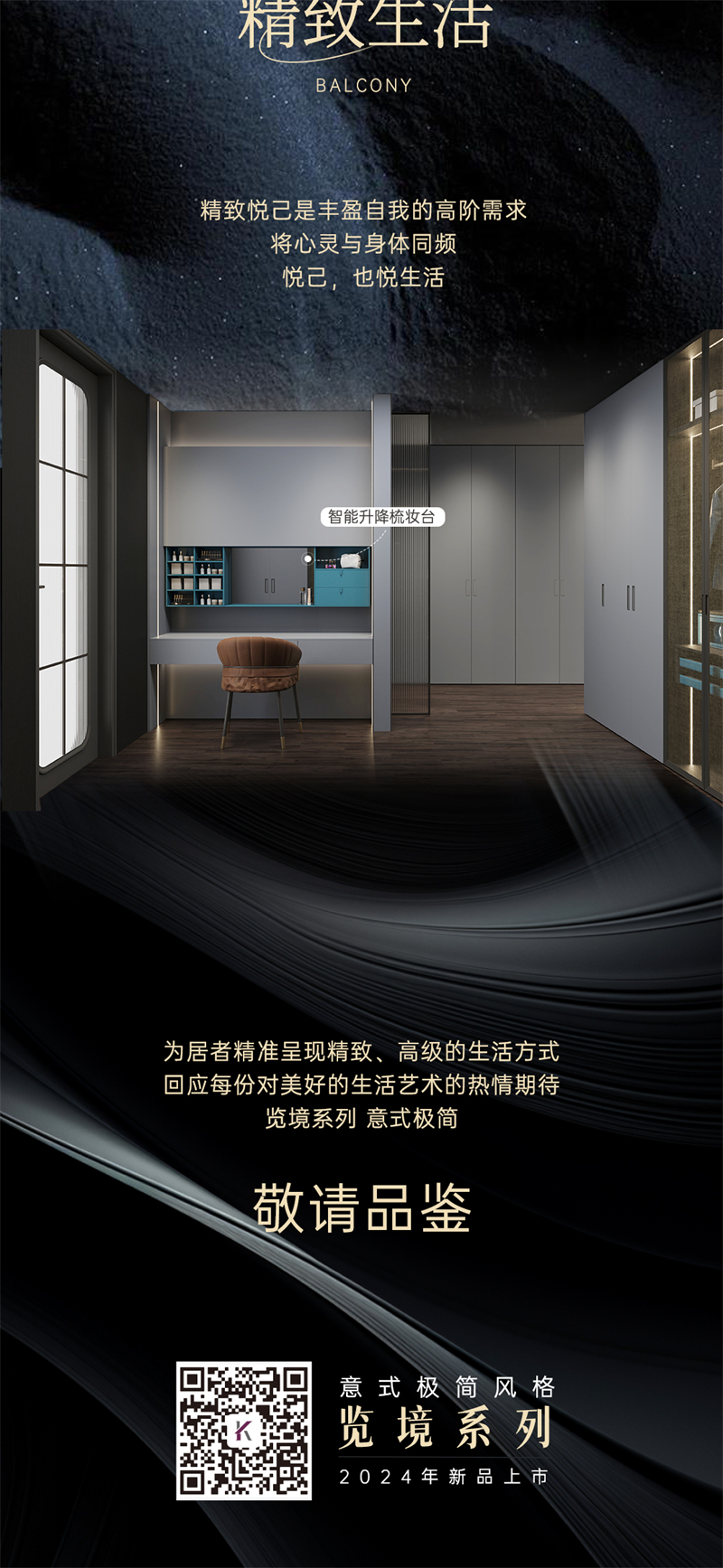 2024年新品系列,覽境 |意式極簡風格 流利筆挺的線條和細膩的觸感,讓空間呈現恰到好處的美感暖色調配色,木紋、石紋、金屬元素的點綴,打造簡約又不失奢華的意式空間人群定位:IT精英人士、企業(yè)高管、海歸高知