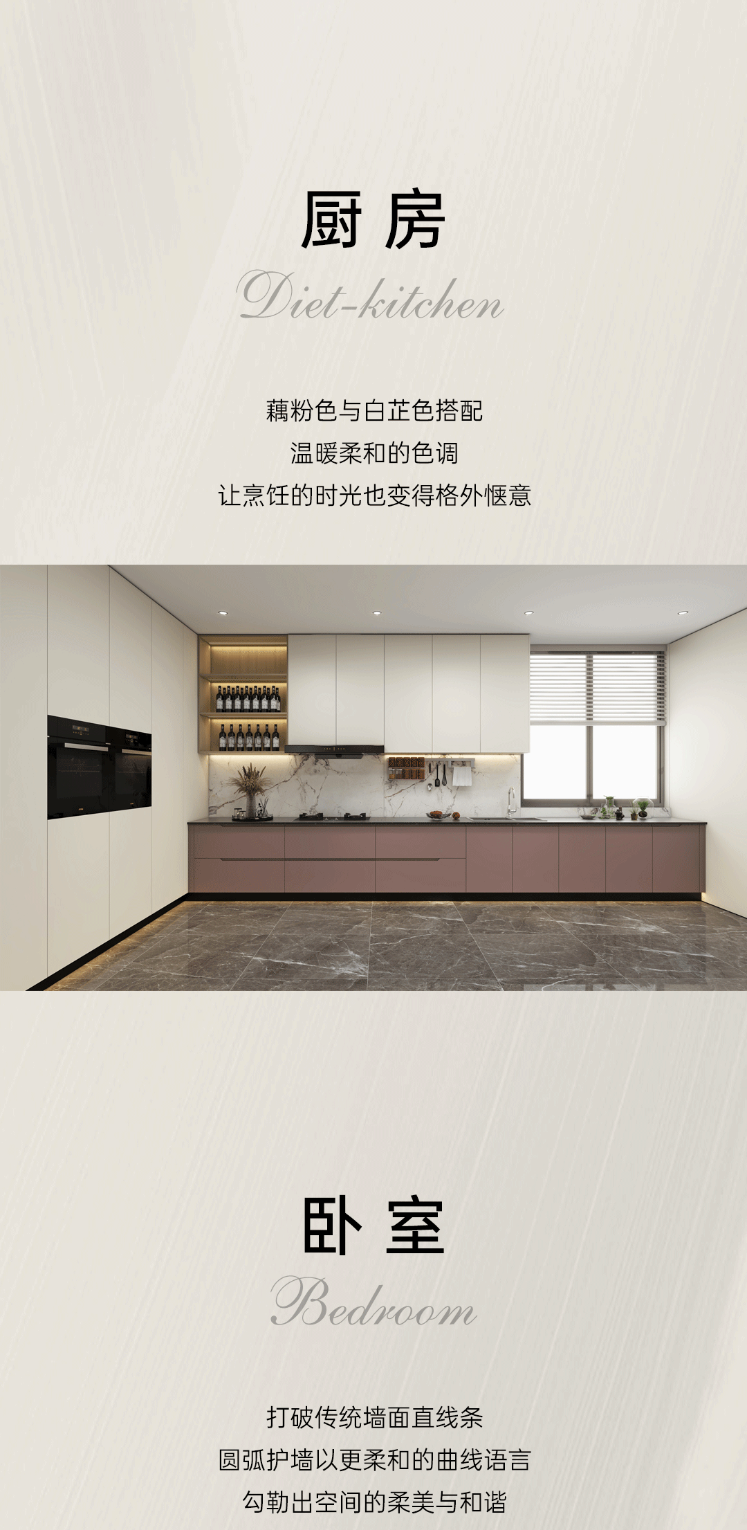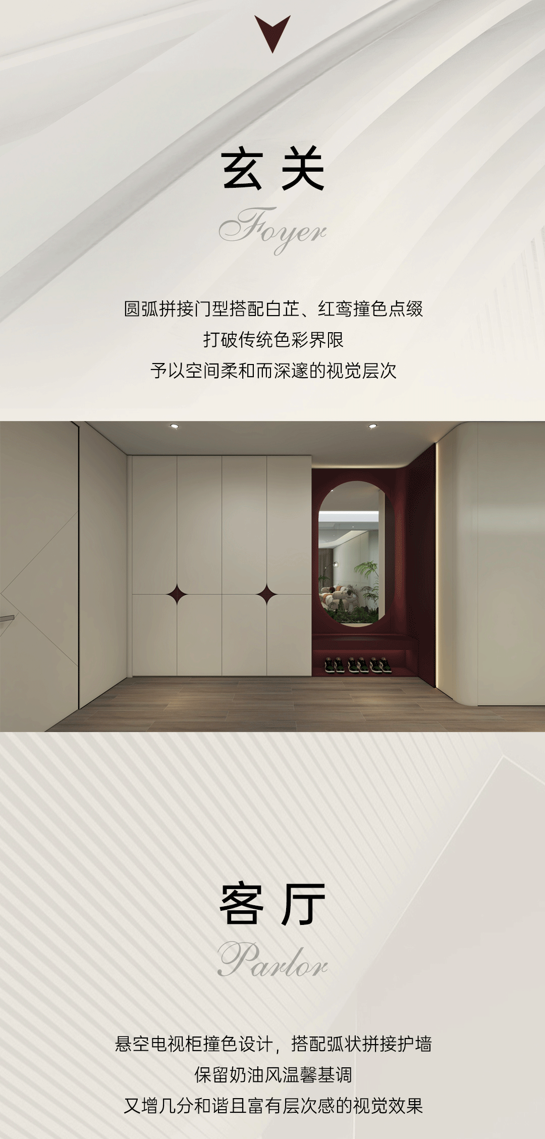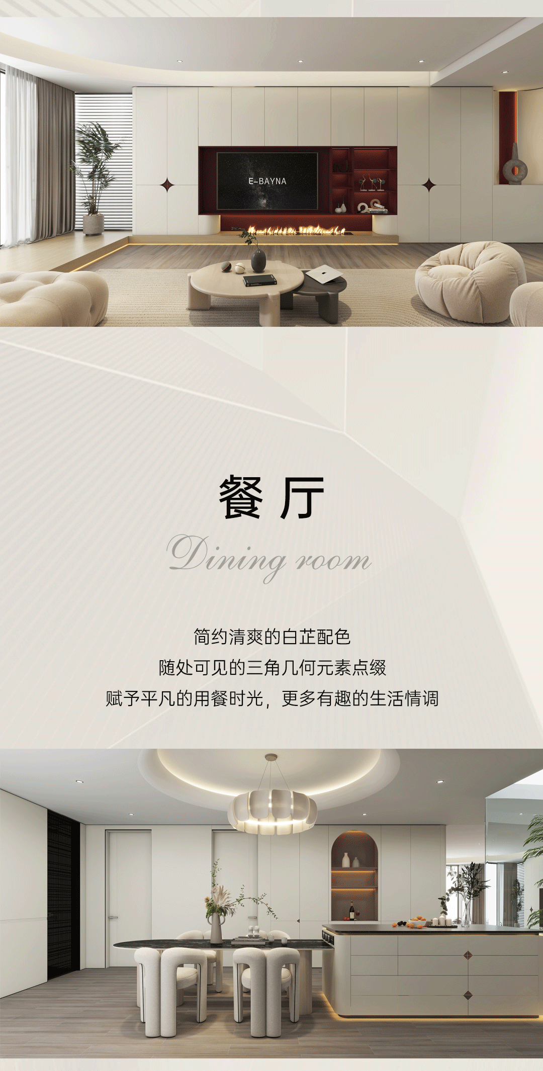 造型:幾何拼接造型與柔和弧線的結(jié)合,在設(shè)計(jì)中創(chuàng)造出一種現(xiàn)代溫馨的氛圍。