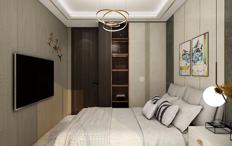 輕奢免漆門,原木本色,實(shí)木觸感,一門到頂讓臥室空間更顯高挑,并與床頭的護(hù)墻板相映襯,輔以奢麗金屬質(zhì)感裝飾條,完美傳承免漆門的高端奢華感。