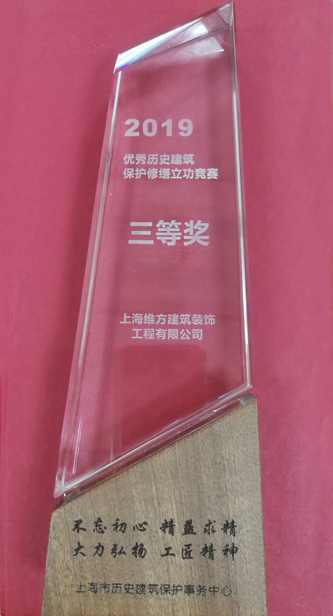 公司取得上海市2019年度優(yōu)秀歷史建筑保護修繕立功競賽三等獎