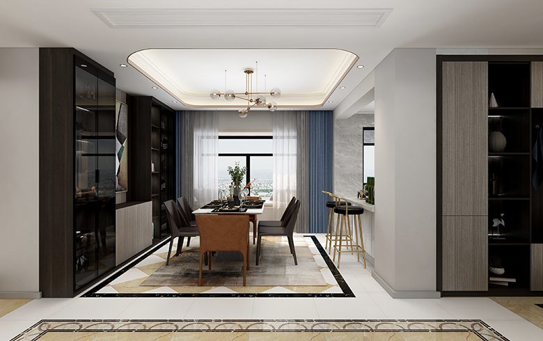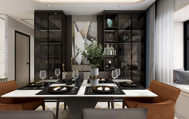 喧囂的城市,寧靜的港灣,是我們從忙綠工作中回到家的一種依托,享受舒適家的感覺。本案運(yùn)用多處的銀絲木搭配黑澤明的淺深顏色做主色調(diào),搭配灰系的墻布來強(qiáng)烈烘托一個(gè)安靜而不浮夸的居住環(huán)境,讓整個(gè)空間不顯得壓抑。運(yùn)用長(zhǎng)城板來代替原有的護(hù)墻,顯得整個(gè)空間的不單調(diào)。背景墻的石材來襯托整案的客餐廳的亮點(diǎn),奢華而不失內(nèi)涵,低調(diào)而不平淡