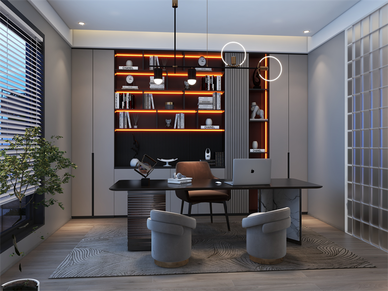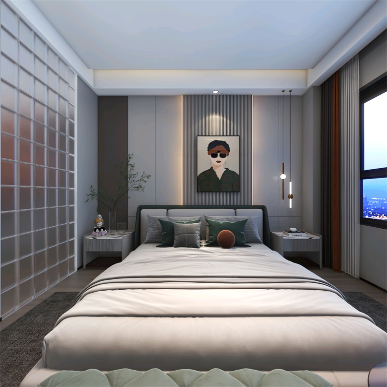 此案,為現(xiàn)代極簡風(fēng)格,整體以簡單大氣,穩(wěn)重不失溫馨,設(shè)計上嚴格遵循人體工程學(xué)原則,在造型、材質(zhì)等方面要符合人的生理和心理需求。此案設(shè)計的色彩比較單一,顏色多選用單色,或少數(shù)幾種顏色搭配。避免使用多種顏色混搭以及避免使用強烈對比的顏色,復(fù)雜華麗的顏色,反對繁瑣的花紋色彩的搭配。在色彩上追求平和、舒緩、內(nèi)斂之感極簡主義的設(shè)計多采用直線、方形,或規(guī)則簡單的幾何形狀,減去一切不必要的元素與細節(jié),比例精確,整體呈現(xiàn)簡潔明快,干凈利落感覺。此案中大部分空間運用了無主燈,因為無主燈設(shè)計講究的是“見光不見燈,分區(qū)域散點照明”。而且的無主燈設(shè)計能夠讓空間更具層次感,顯得非常的高級,若隱若現(xiàn),層次分明。