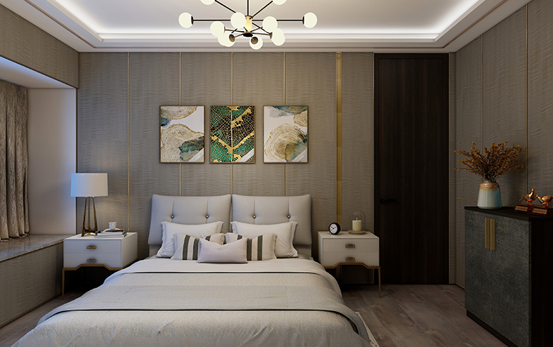 臥室作為休息的地方,在進(jìn)行裝修設(shè)計(jì)時(shí)不可采用太過(guò)明亮的燈光照明,那樣會(huì)太過(guò)刺眼,影響到睡眠質(zhì)量,一般在燈光上的選擇多以柔和偏暖的顏色,營(yíng)造出寧?kù)o祥和的氛圍。