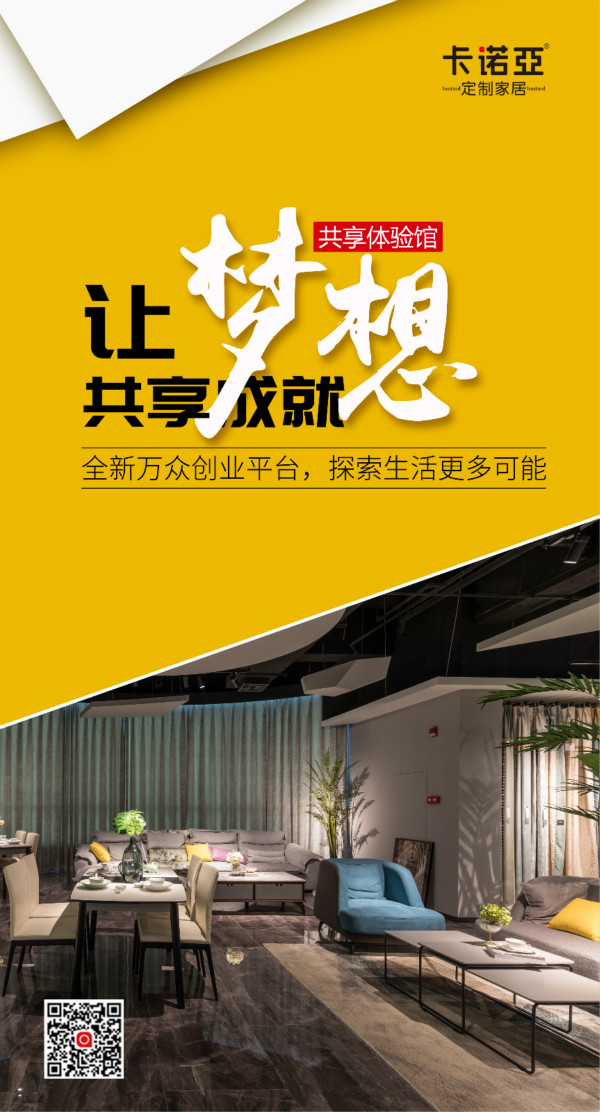 卡諾亞定制家居共享體驗館,由廣東卡諾亞家居有限公司全新打造,全國首家共享體驗館坐落于廣州天河區(qū)車陂路95號2樓,屬于中國泛家居行業(yè)創(chuàng)新孵化空間,面向家居建材、裝飾設(shè)計、裝修公司、軟裝公司、店長、導購、獨立設(shè)計師、項目工長、泛家居創(chuàng)業(yè)團隊、大學生等領(lǐng)域的創(chuàng)新群體、商貿(mào)市場、財稅金融等相關(guān)服務(wù)供應商免費開放,提供不同類型的物業(yè)空間和專業(yè)的培育孵化服務(wù)。另外還有創(chuàng)意辦公空間和創(chuàng)意辦公展廳,旨在打造成多層次的創(chuàng)意孵化平臺。