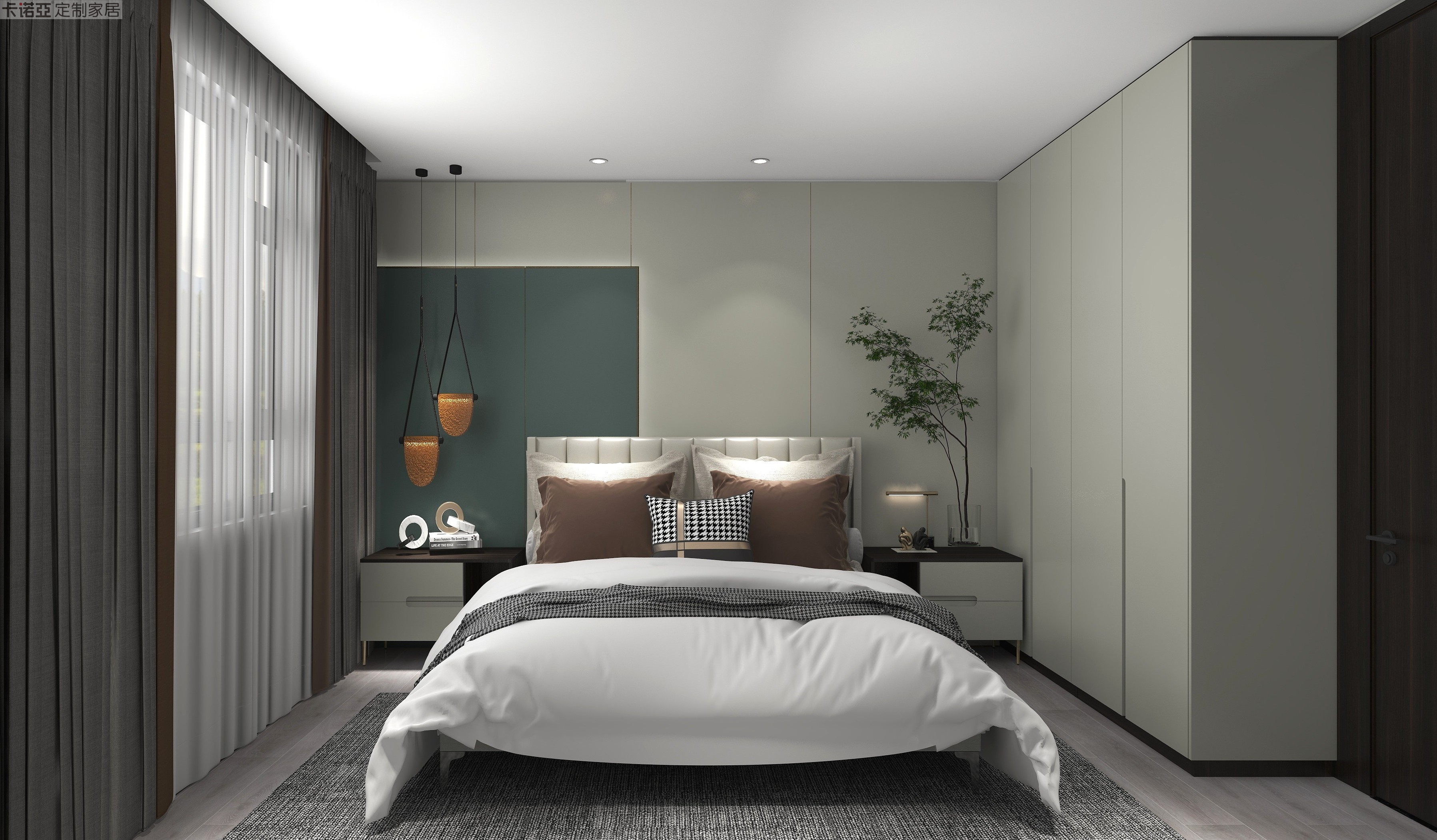 整體以莫蘭迪色系為基調(diào),低飽和度的色系,讓空間更顯質(zhì)感,帶來寧靜溫馨的睡眠氛圍。衣柜“水云紗”柜門搭配“黑金剛”柜體,與臥房內(nèi)的軟裝呈現(xiàn)一致的色調(diào),床頭啞光的“水云紗”護(hù)墻板搭配原木色木地板,溫柔溫馨,讓好夢天天相伴。