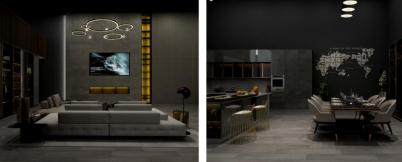 卡諾亞展館還采用大空間穿插設(shè)計,從廚房可以看到客廳、餐廳……形成“你中有我,我中有你”布局,各類空間遙相輝映,通透開敞,視野開闊。